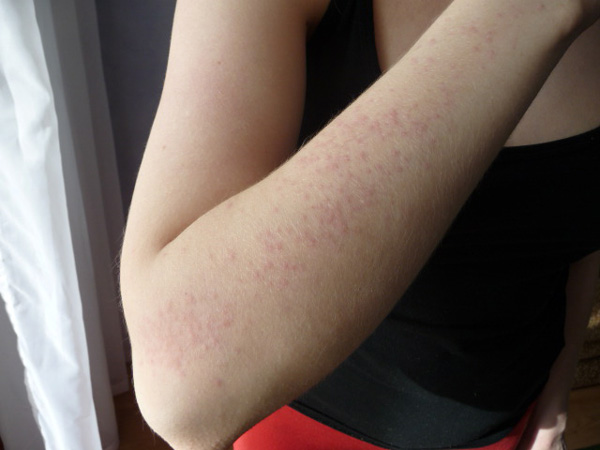 • Зудящие розоватые пятна на кистях рук