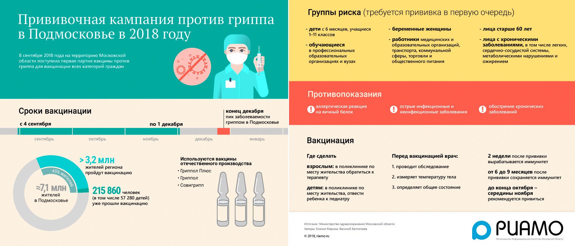 - противопоказанием к введению вакцины является наличие: аллергии на куриный белок, тяжёлых иммунодефицитов, хронических заболевания в период обострения. Еще одно противопоказание — возраст ребёнка младше полугода;