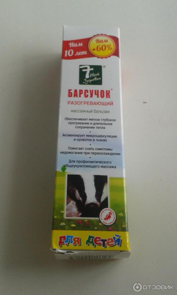«Барсучок» – массажный разогревающий бальзам, созданный для детей на основе барсучьего натурального жира. Обеспечивает глубокое прогревание мышц и надолго сохраняет тепло, что способствует выздоровлению ребенка и сократить симптомы простуды. Активизируется микроциркуляция крови вследствие насыщения ее витаминами и микроэлементами.