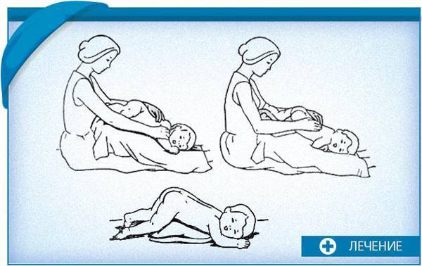 - Уложите маленького пациента на живот, слегка разотрите ему спину.