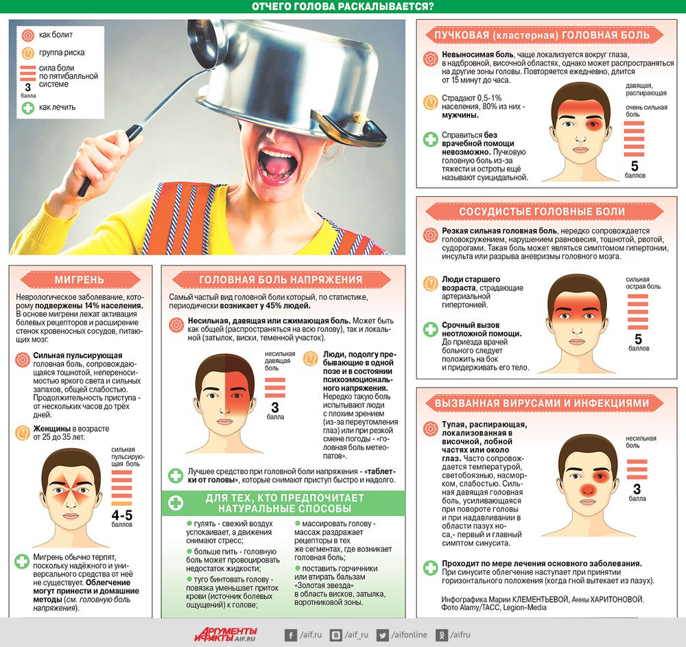 Боль часто непереносимая и не поддается обезболиванию. Приступы могут вырывать до нескольких суток из привычной жизни. Сосуды распухают от сильного прилива крови, повышая давление внутри черепной коробки.