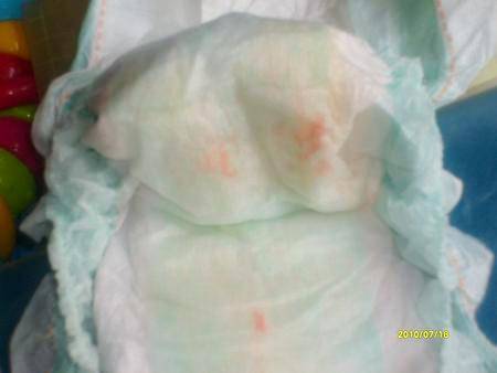 Очень часто молодые родители начинают паниковать, увидев, что моча младенца имеет розовый оттенок. Это обычный физиологический процесс, неопасный, вызванный наличием в урине солей калия и натрия. Хотя выделения с кровью могут быть сигналом инфекции мочевыводящей системы, врождённых заболеваний почек или приобретённых травм. У девочек кровь на подгузнике может сигнализировать о гормональном сбое. Также причиной может послужить запор, пелёночный дерматит, лактозная непереносимость, попадание крови в органы пищеварения с молоком матери из трещин на сосках.