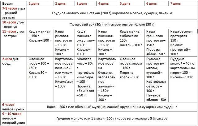 Сколько продуктов прикорма должен съедать ребенок — таблица прикорма