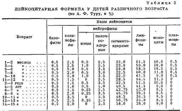 - у двухмесячных младенцев — 42-72% или 2,9-9,9 109/л;